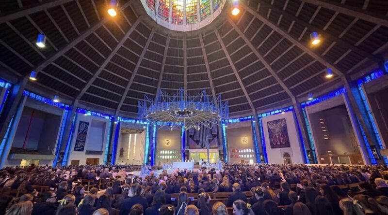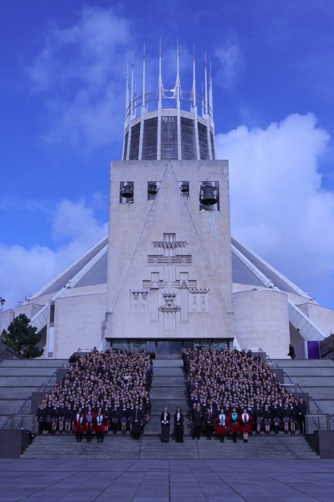 On Wednesday 25th March, the Solemnity of the Annunciation of the Lord, our whole school joined students from Notre Dame Catholic Academy and elsewhere in celebration of the 175 years of Notre Dame education enjoyed by the young people of Liverpool.